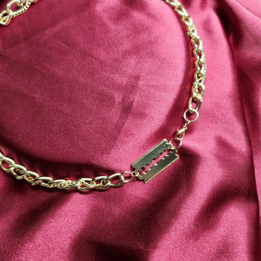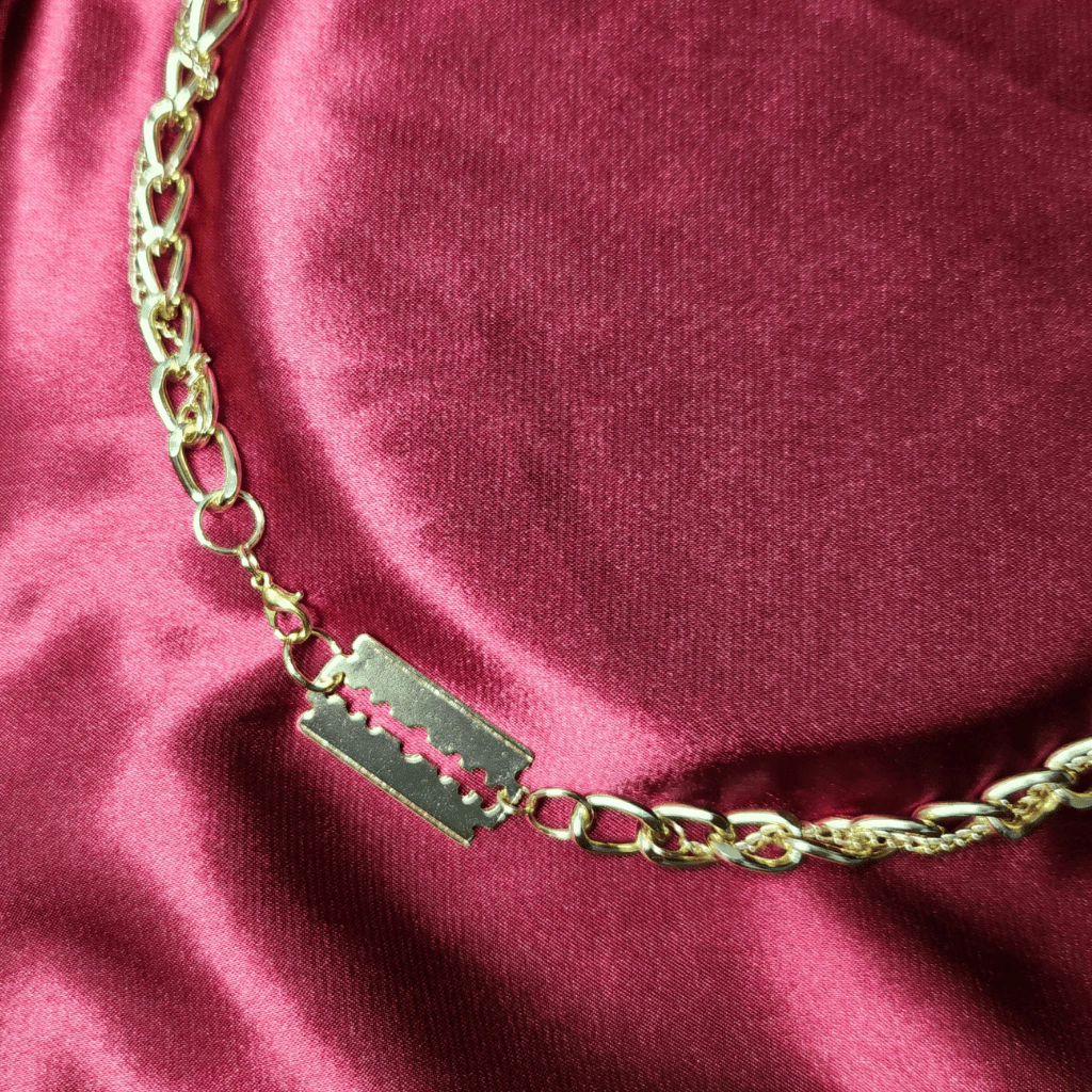 O Colar Midnight é a peça Statement que expressa sua identidade. Com uma correntaria única e a opção de pingente de lâmina ou coração, ele é perfeito para quem busca um visual Edgy, Gótico ou Streetwear.